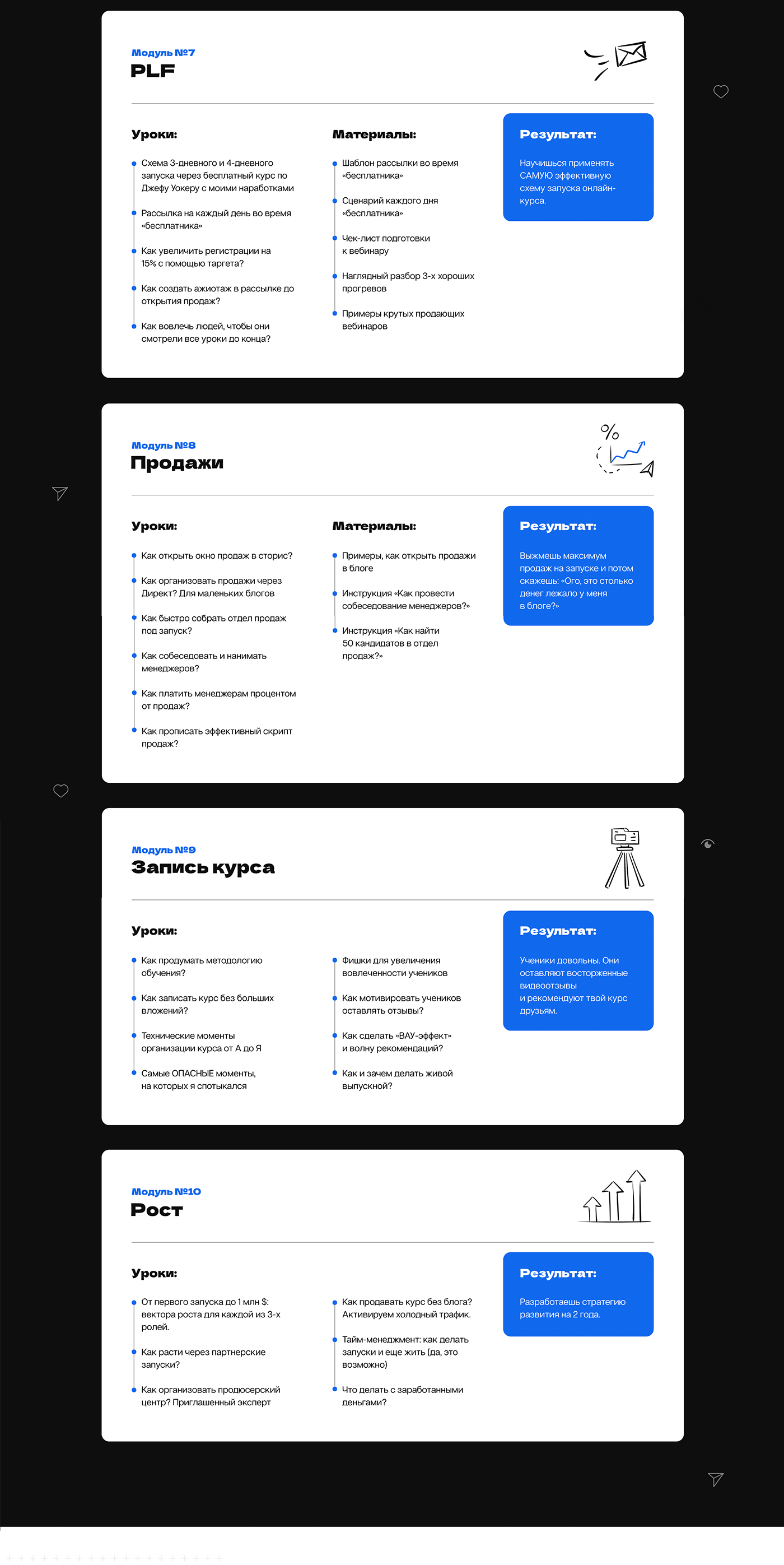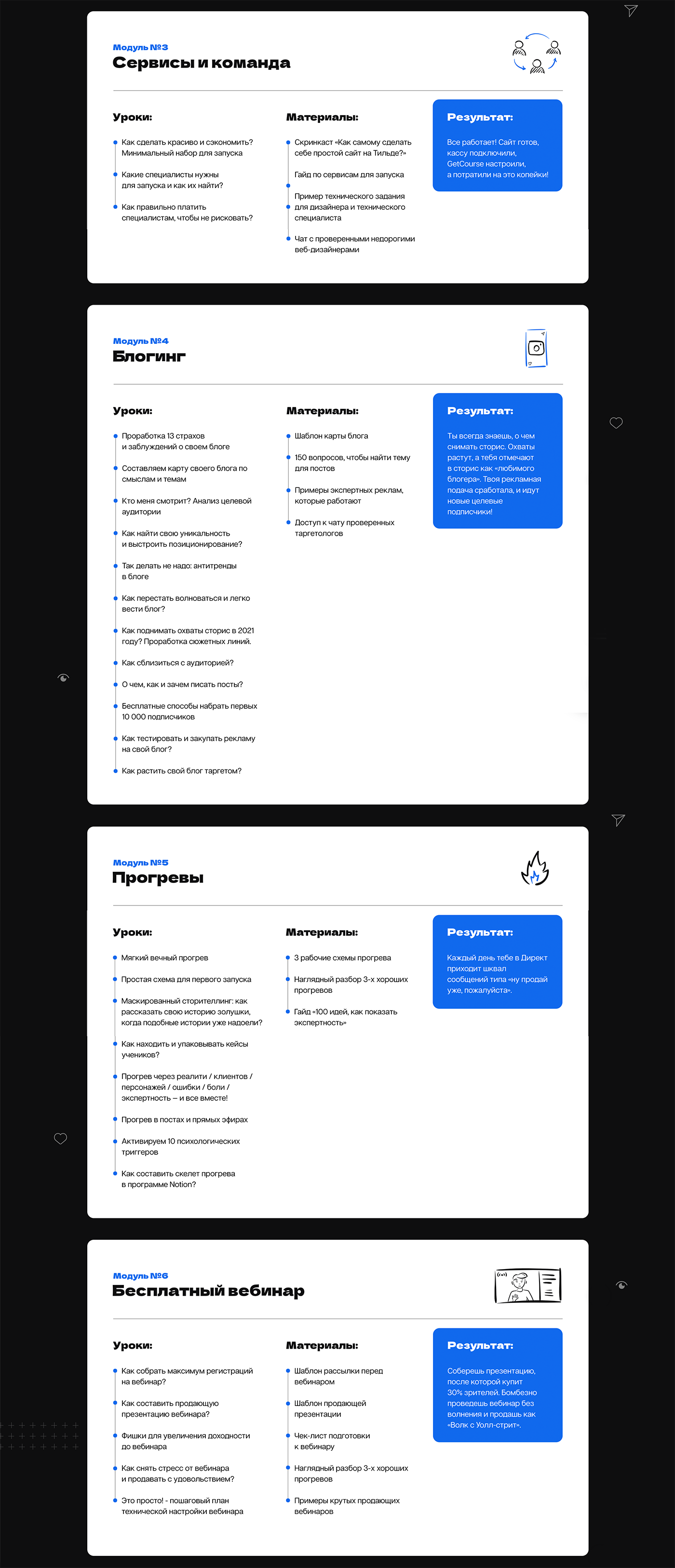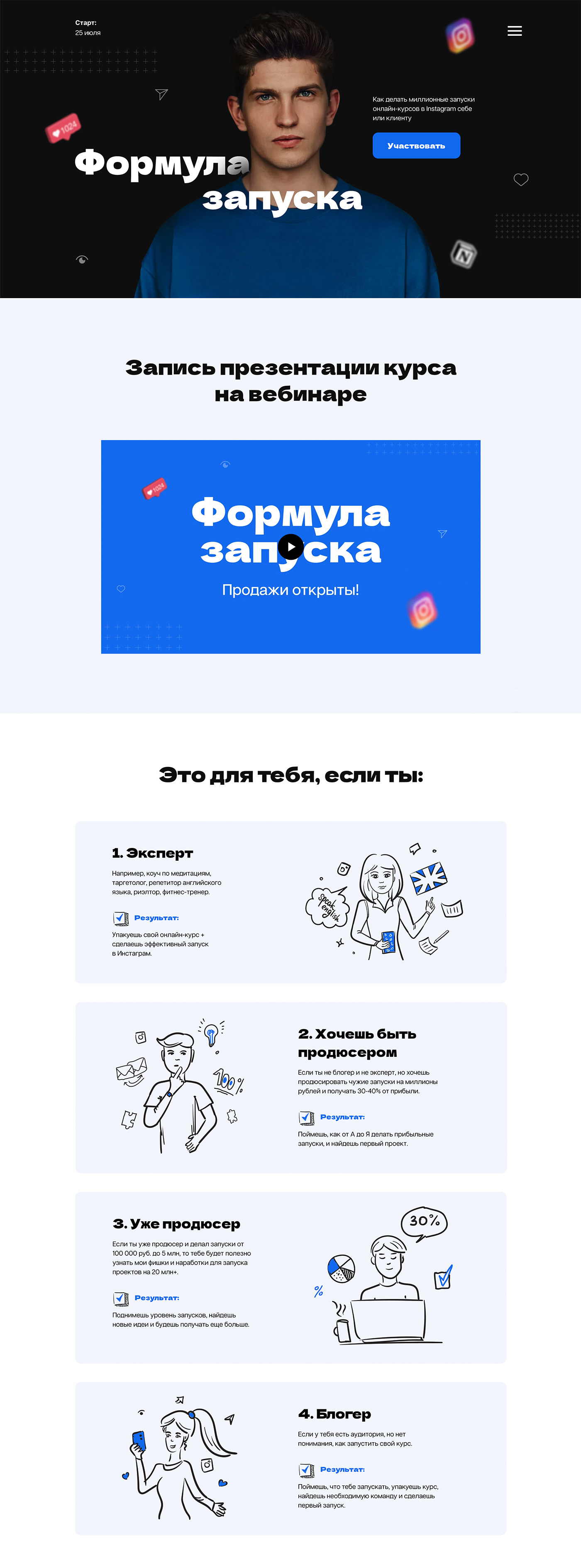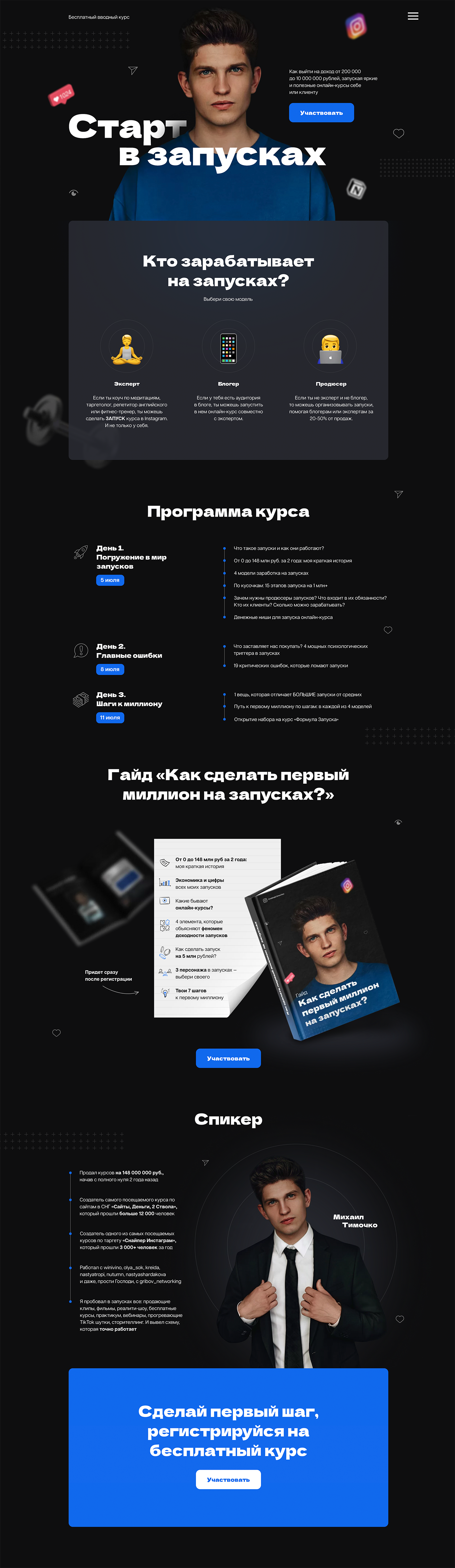 Создание сайтов для бесплатного курса и основного, продающих страниц для вебинара